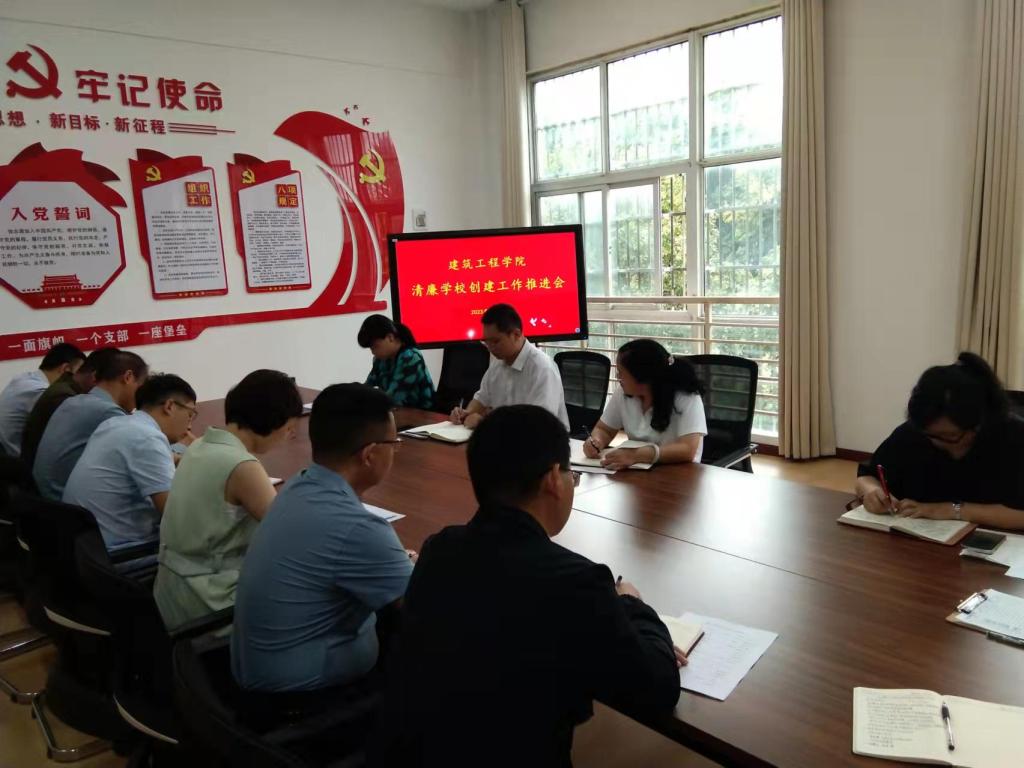 9月18日上午,建筑工程学院在6229会议室召开了清廉学校创建工作推进会。党总支书记王晖主持会议,学院领导班子成员和教研室主任参加会议。