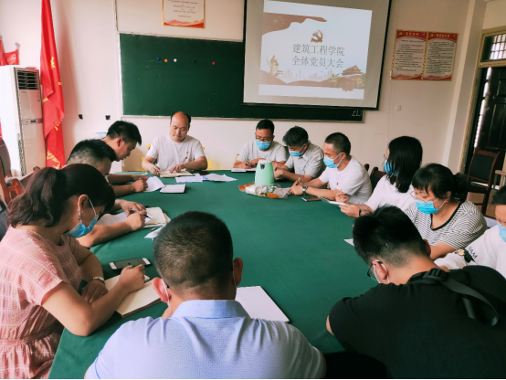 2020年6月10日下午3点,建筑工程学院召开全体党员会议,会议应到17人,实到15人,请假2人。会议就近期党员发展和组织管理,本学期党员活动和事务进行了讨论。并宣读了党总支增设一名统战委员及学生支部纪检委员改任的决定,由大家讨论并通过。最后,大家进行了集体学习讨论。