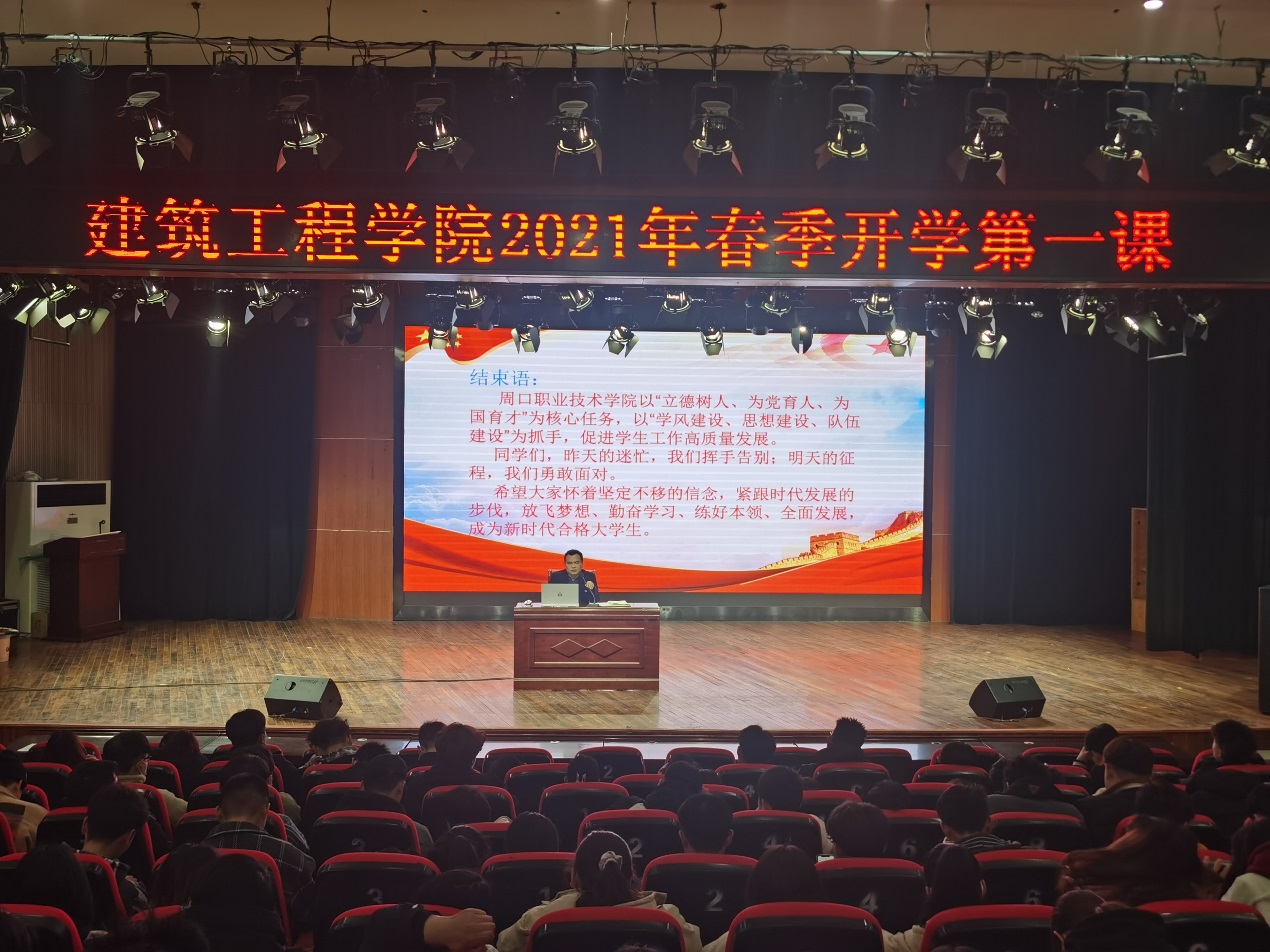 新学期伊始,为贯彻落实思想政治课的引领作用,塑魂育智。3月10日下午,建筑工程学院组织全体学生共同学习了以“青年学生深刻认识面临的形势与任务”为主题的开学第一课。课程由党总支书记范伟杰主讲。