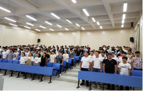 2019年10月9日下午,建筑工程学院2009级建筑装饰工程技术专业优秀毕业生赵亚强(右一)应母校邀请,在5区多媒体教室为2018级学生做就业、创业专题讲座。
