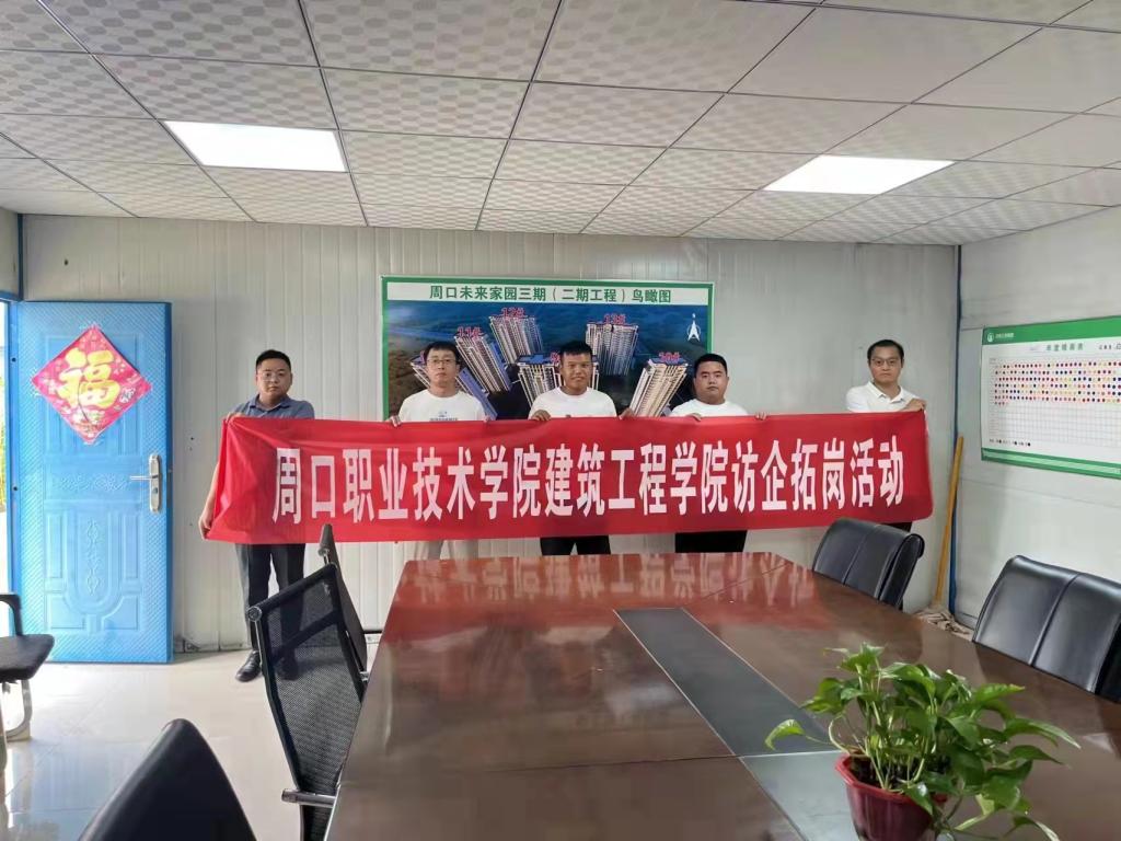 为了更好促进我院学生就业,落实访企拓岗促就业专项行动计划,2023年7月13日,sunbet建筑工程学院建筑工程技术教研室主任刘雪峰、实训中心主任黄明辉、工程造价教研室主任卞华伟到安徽同舟工程咨询有限公司周口分公司开展访企拓岗活动,与企业深入交流。此次活动进一步拓宽了我院学生实习就业渠道。