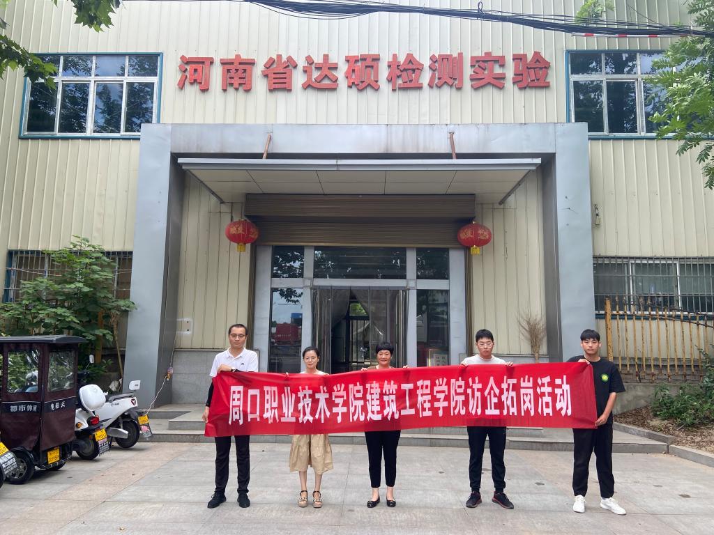 为进一步拓宽学生实习就业渠道,促进毕业生更高质量就业,7月14日,建筑工程学院工程造价教研室主任卞华伟带领工程造价教研室教师苑继红等一行到河南省达硕工程检测实验有限公司开展访企拓岗活动。双方就人才培养、实习就业等方面进行了深度交流,并就学生就业及实习等方面探讨了进一步合作的意向。