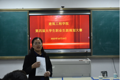 为了帮助同学们更好的规划自己的职业生涯,建筑工程学院于2023年10月18-19日举行“第四届大学生职业生涯规划比赛”。担当本次比赛的评委有:建筑工程学院院长刘胜杰、副院长杨改、学管办主任郭华伟,22级、23级全体辅导员。